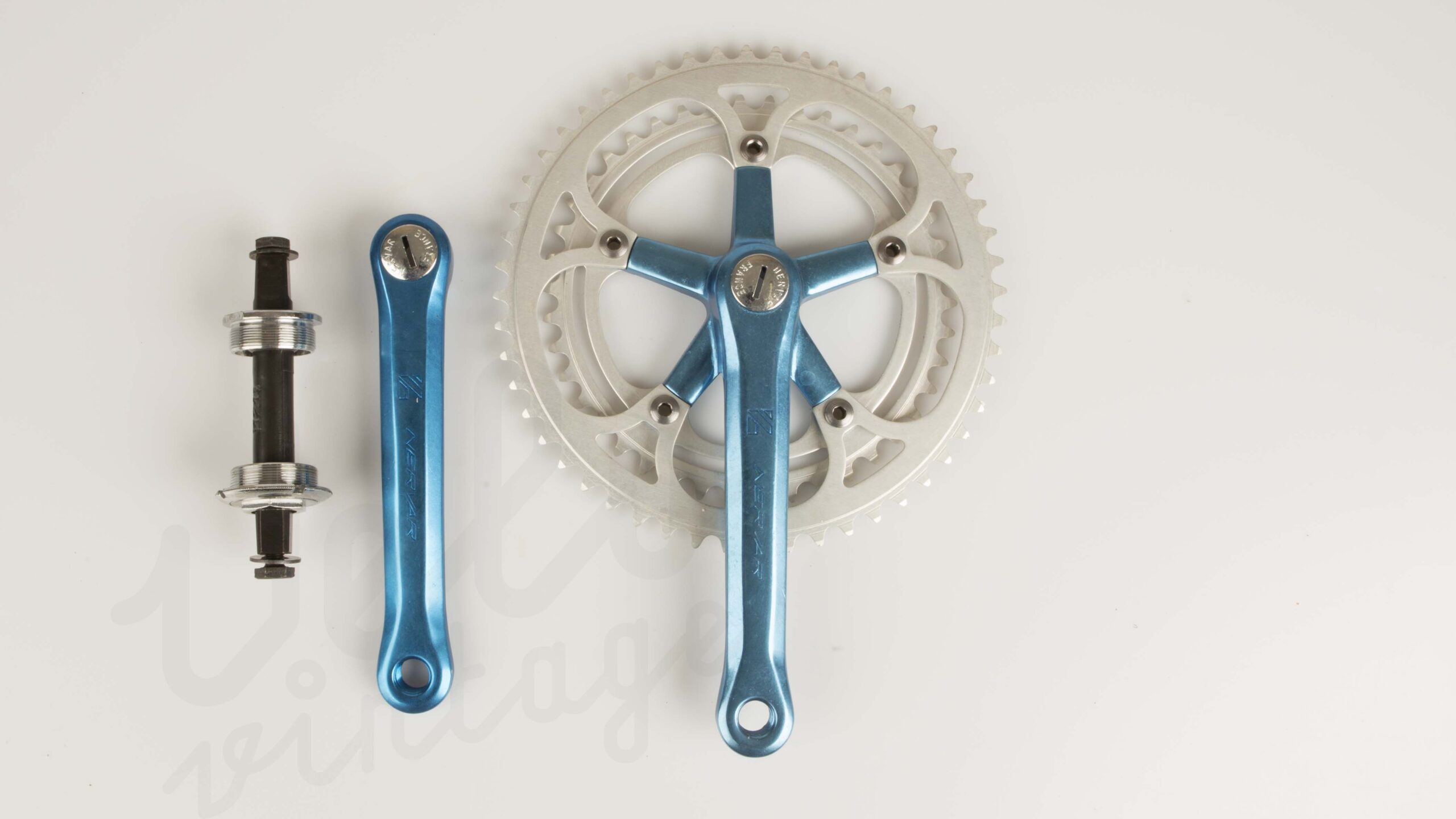 NOS/NIB Vintage Nerver Crankset | 52/42T | 170mm | Anodized Blue | Incl Bottom Bracket
